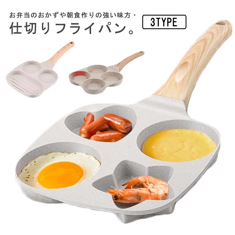 お弁当作りの強い味方 同時に3つ 4つ料理が作れる くっつかない 洗いやすい 目玉焼き フライパン 仕切り付き