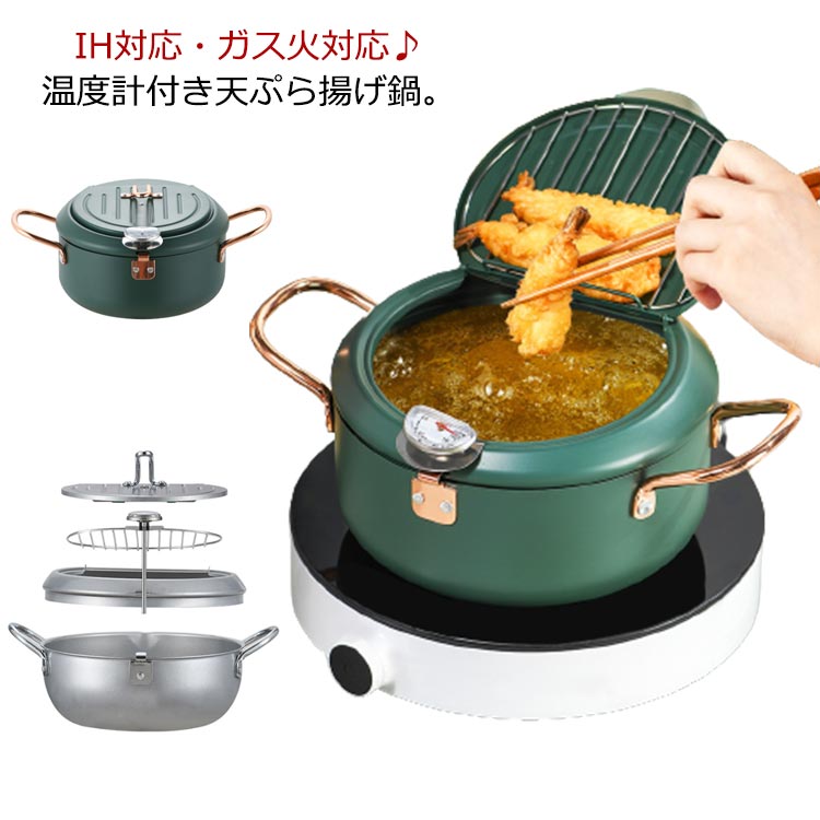 温度計付きで手軽に美味しい揚げ物ができる♪ ふた付き フライヤー 両手 揚げ物鍋 新築祝い 引越し ギフト キッチン用品