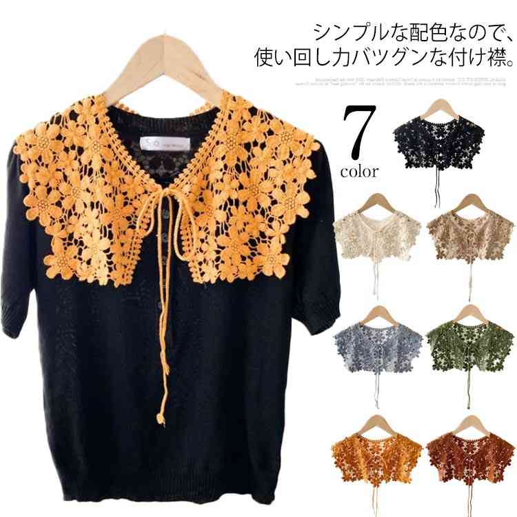 つけ襟 高校生 総レース ビッグ クロシェ編み フェイクカラー つけえり セーラーカラー つけ衿 レディース レース フラワーレース