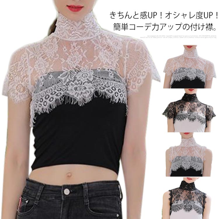 スタンドカラー ハイネック レース フリル レース 袖なし ブラウス シャツ 付けえり レイヤード 重ね着 小物 韓国ファッション 白 黒 無地 ノースリーブシャツ つけ襟