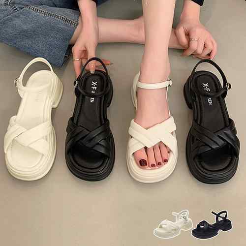 サマーサンダル 厚底ソール ボリューム 太ヒール クロスストラップ 歩きやすい 疲れない 人気 カジュアル 大人可愛い靴 スポーツサンダル 新作ベルトサンダル リゾートサンダル海