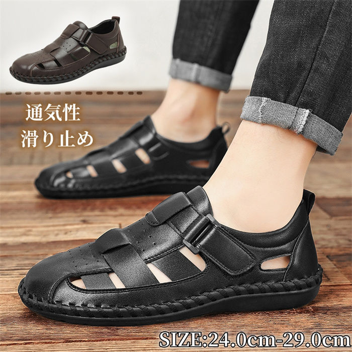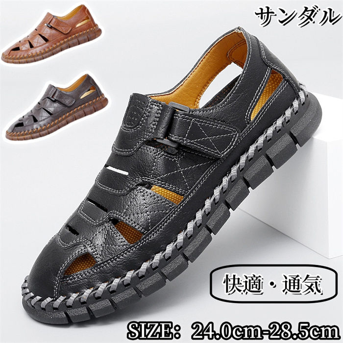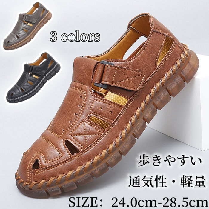 スポーツサンダル メンズ サンダル 牛革 ビーチサンダル サマー コンフォートサンダル カジュアル 軽量 歩きやすい 通気性 おしゃれ 大きいサイズ 24.0cm~28.5cmアウトドア 夏用 涼しい