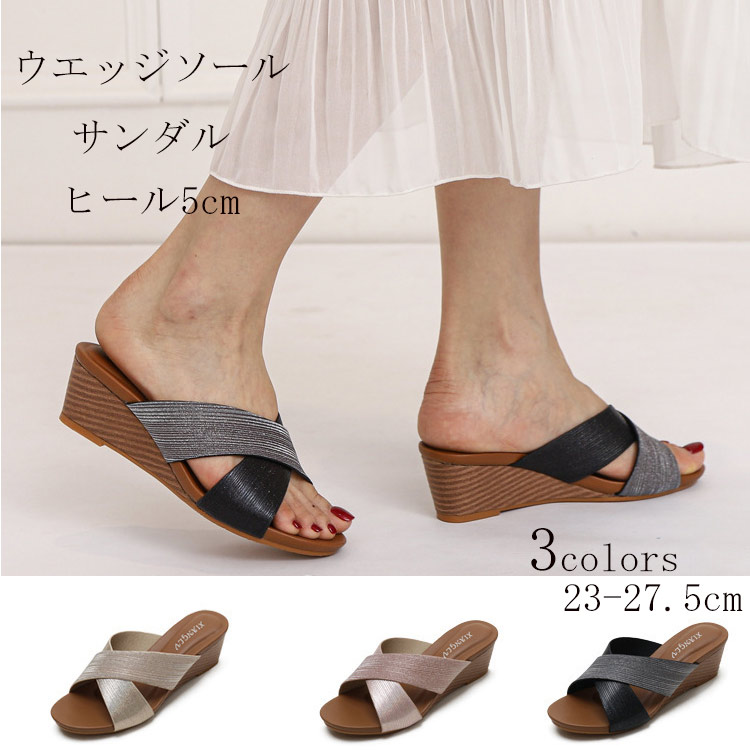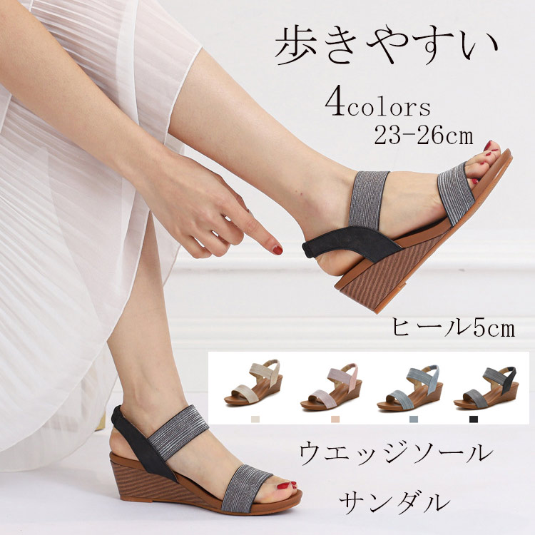 ウェッジソール厚底サンダル 5cm ローヒール カジュアル オフィス ヒール ウェッジ 軽い 美脚 走れる 厚底シューズ 夏 サマー 23 23.5 24 24.5 25 25.5 26 26.5 2
