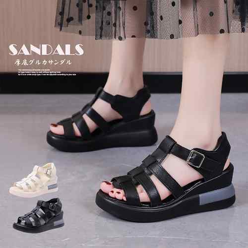 ウェッジソール厚底サンダル 5 ローヒール カジュアル オフィス ヒール ウェッジ 軽い 美脚 走れる 厚底シューズ 夏 サマー