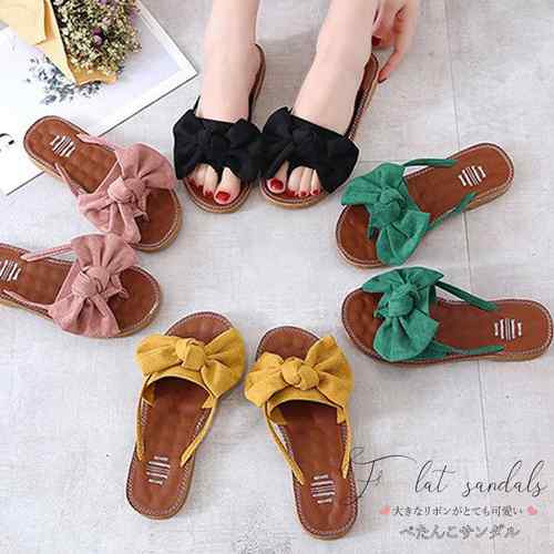 フラットサンダル レディース ビッグリボン コンフォートサンダル ぺたんこ 可愛い スリッパ 痛くない ビーチサンダル ミュールサンダル 歩きやすい 靴 リゾート サンダル