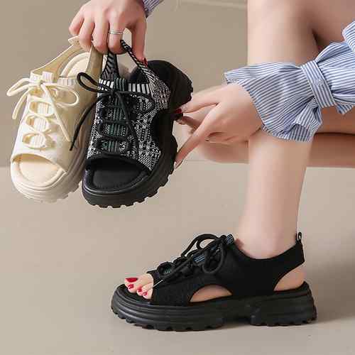ボリュームソールコンフォートサンダル美脚脚長 歩きやすい カジュアル ニットサンダル 履きやすい靴春夏 軽量くつ 通気性 サンダル疲れにくい 蒸れない サンダル スポサン大人女性靴