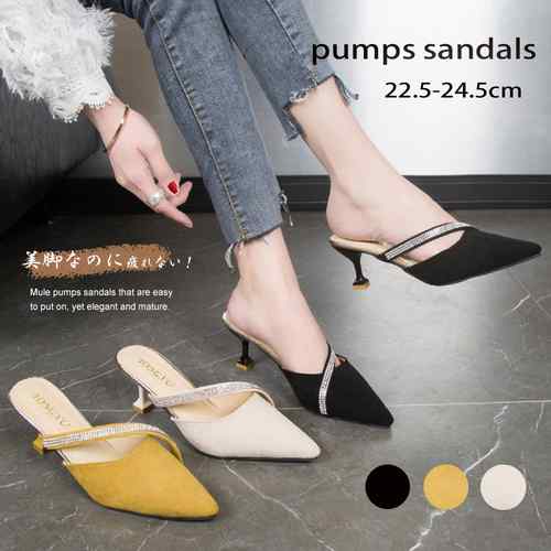 おしゃれ ヒールサンダル ポインテッドトゥ 美脚 歩きやすい サボサンダル 春夏 かかとなし パンプス きれいめ 大人靴 疲れない靴 韓国 つま先ありサンダル つっかけサンダル黒