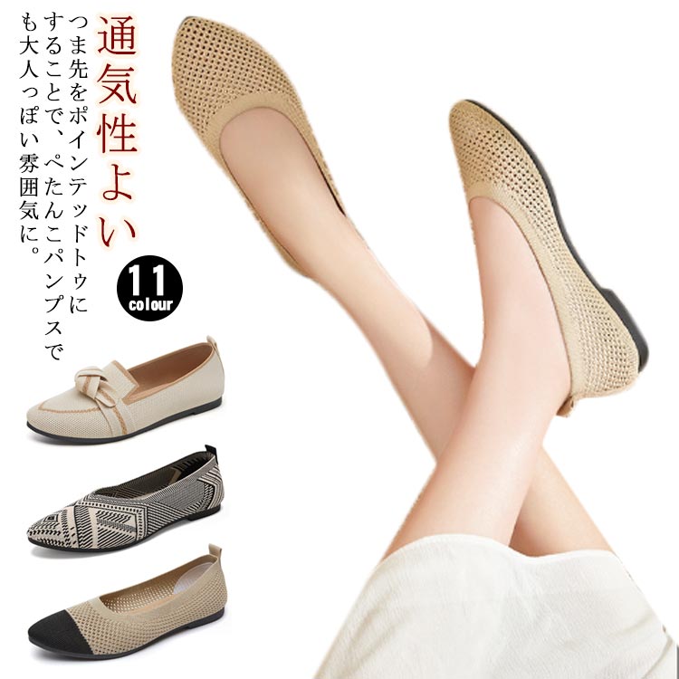 メッシュ編み フラットパンプス スリッポン サンダル パンプス 夏用 軽量 通気性 履きやすい フラットソール