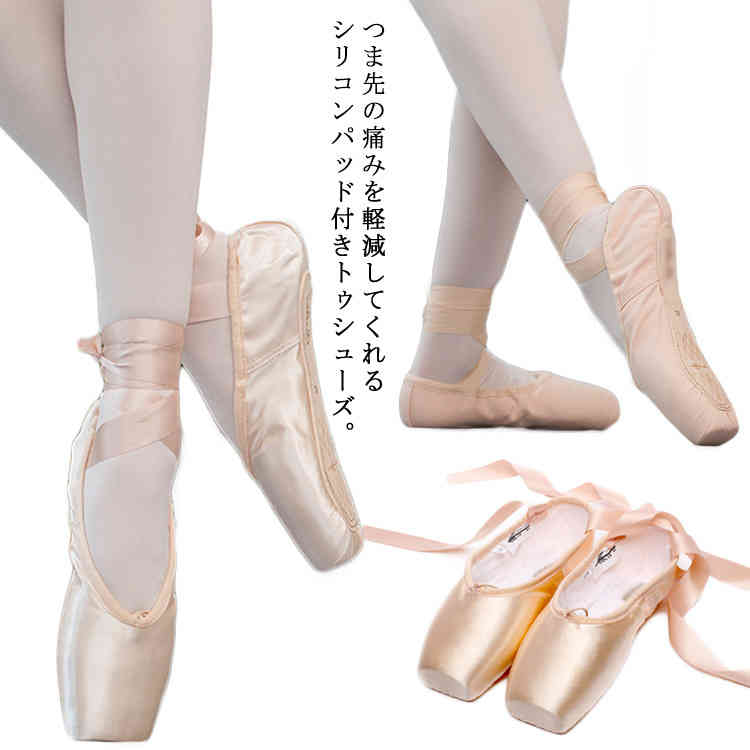 痛みを軽減 シリコントゥパッド付き バレエシューズ トゥシューズ バレエ用品 ダンスシューズスポーツ アウトドア 体操 ダンス バレエ バレエシューズ