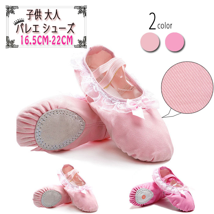 可愛いリボン付き 子供から大人 バレエシューズ 16.5cm~22.0cmスポーツ アウトドア 体操 ダンス バレエ バレエシューズ