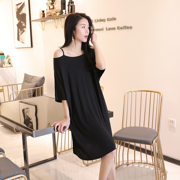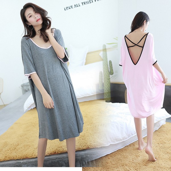 薄手の柔らかストレッチ素材 ゆったりドルマンデザイン ロング丈Tシャツワンピース マタニティ 授乳服 パジャマ