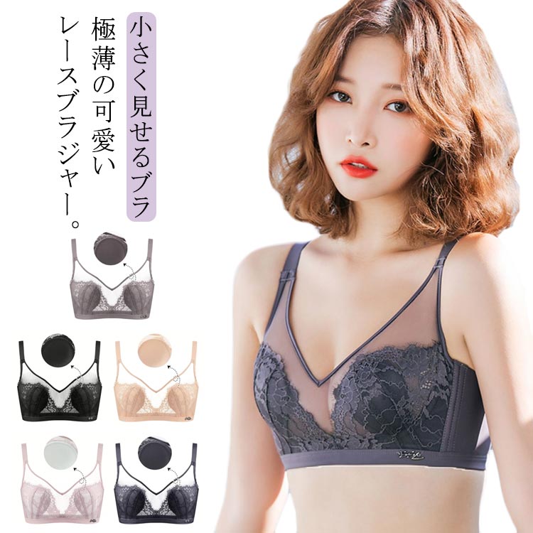おしゃれ 大きな胸を小さく見せるブラ ブラジャー ノーワイヤー 着瘦せブラ 胸が小さく見えるブラ 補正下着 垂れ レースブラ