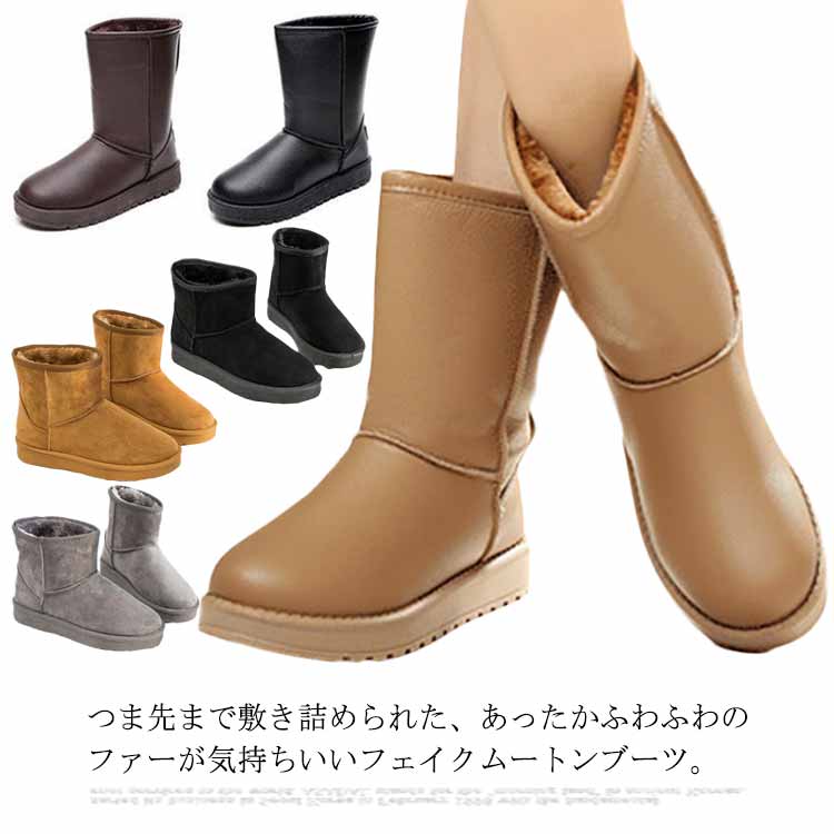 撥水 選べる3タイプ ムートンブーツ ミディアムブーツ 秋冬 フラット フェイクムートン ブラウン ショート丈 防寒 ぺたんこ スエード ファー ベージュ ミドル丈