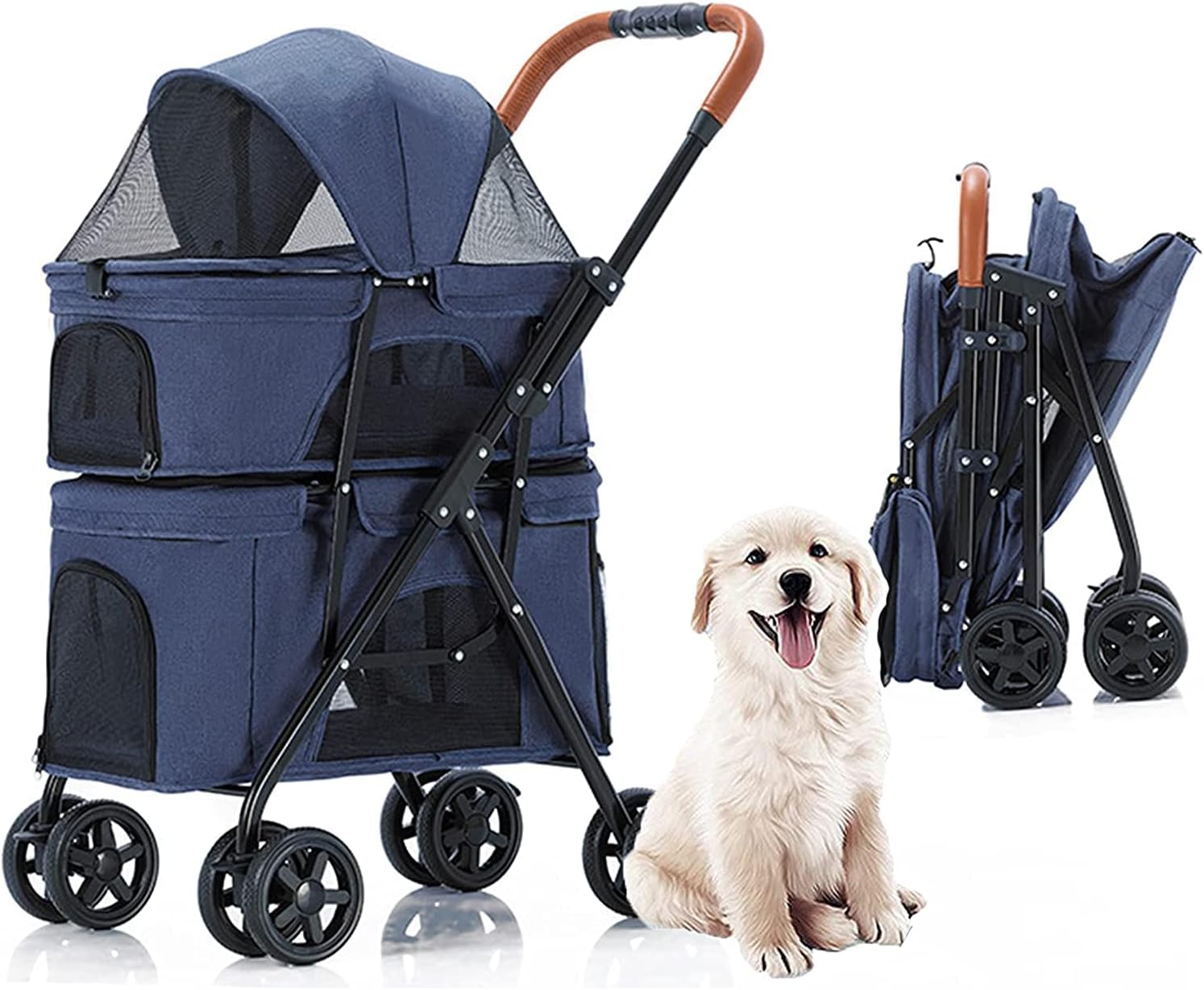 ペットカート 犬用ベビーカー,多機能 軽量 折りたたみ 組み立て簡単 上層は耐荷重10KG、下層は耐荷重10KG犬用ベビーカー ,前輪360°回転 後輪ブレーキ付中型犬 犬 カート,猫 バギー 猫犬兼