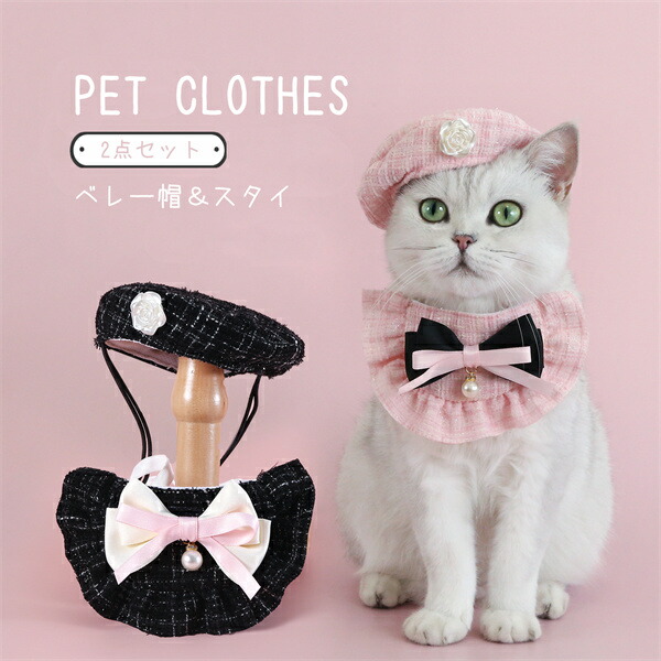 ペット服 ベレー帽 スタイ 2点セット 涎掛け 猫用 犬用 猫 犬 キャット ドッグ ペット帽子 ペットスタイ 可愛い かわいい おしゃれ