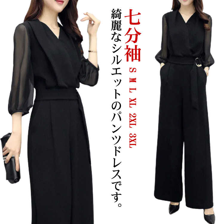 パーティードレス パンツ レディース Vネック パンツドレス 結婚式 通勤 OL フォーマル オフィスカジュアル 七五三 お宮参り お呼ばれ S M L XL 2XL 3XL