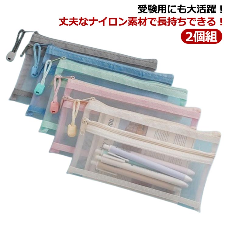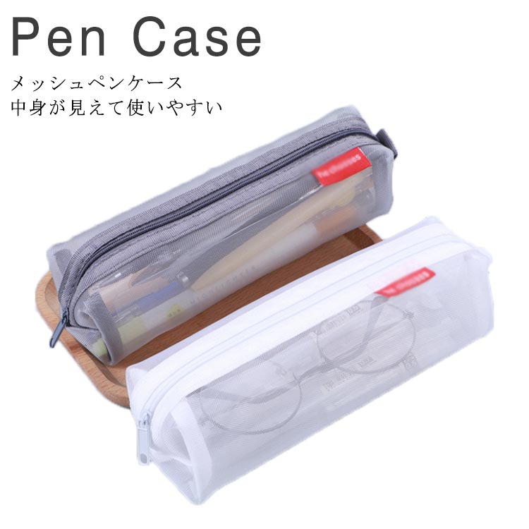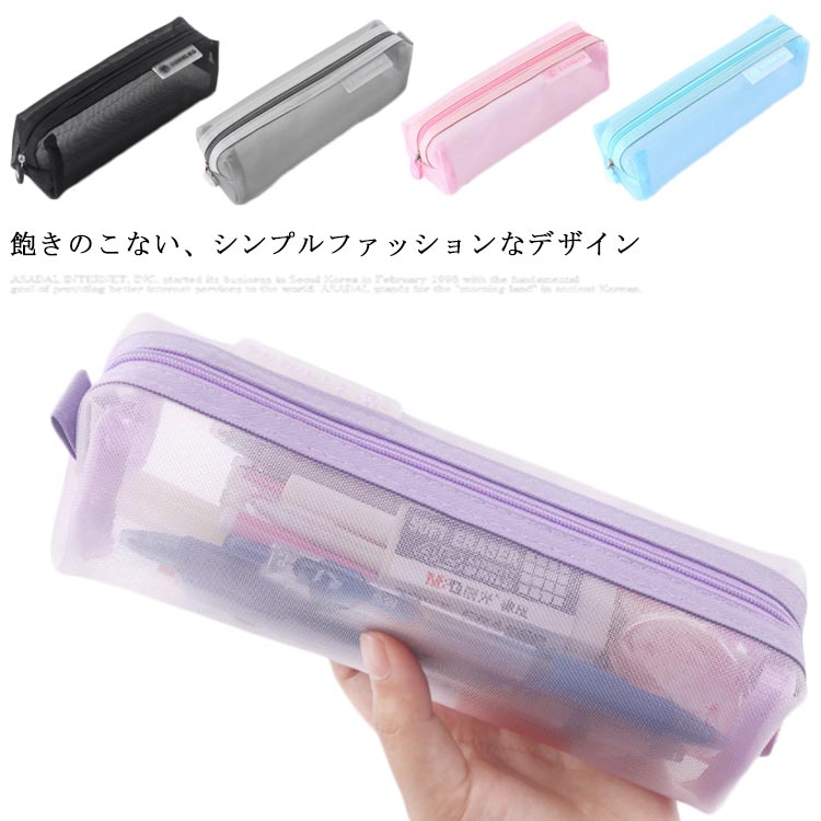 ペンケース 筆箱 ポーチ おしゃれ シンプル メッシュ 学生 透明 軽量 大容量 筆入れ 文房具収納 化粧ポーチ 薄型 無地 小物入れ 収納用品 男女兼用