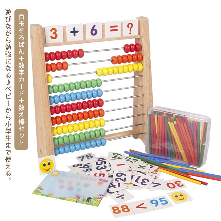4点セット 数字カード 算木 フォーミュラカード 百玉そろばん 数字算数 子供用そろばん 百玉そろばん 教材 おもちゃ 知育学習玩具 男の子 女の子 100玉そろばん