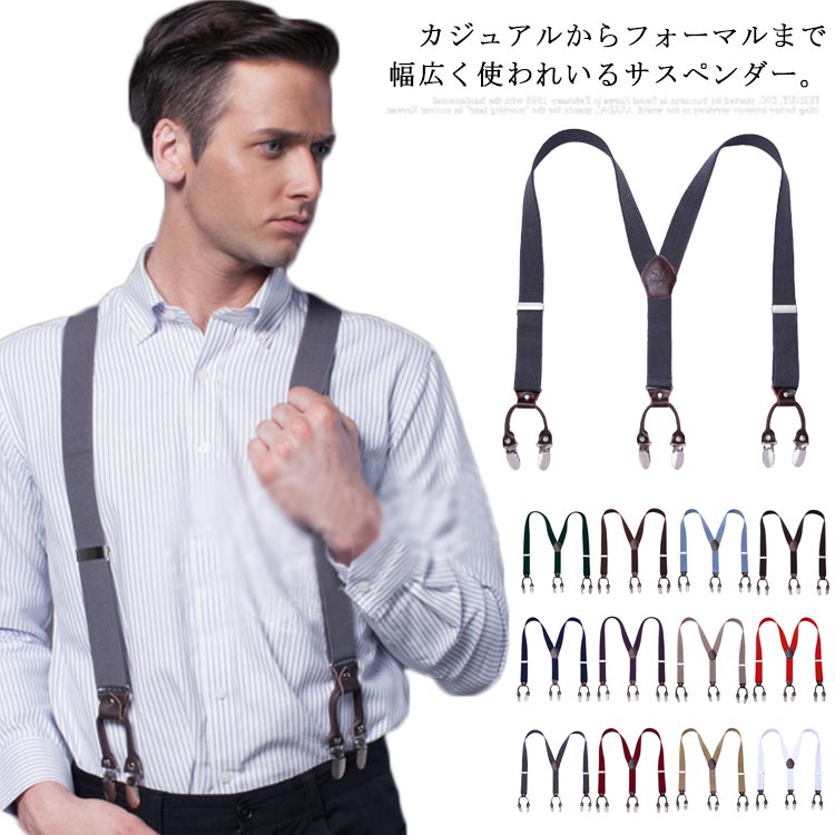 サスペンダー メンズ Y型 ズボン吊り 長さ調節可 吊りバンド 紳士用 ストレッチ性 ビジネス スーツ用品 カジュアル フォーマル 作業用 ファッション小物