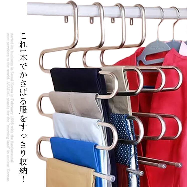 ズボンハンガー ボトムハンガー パンツハンガー 3本セット S字 スラックスハンガー 5着掛け 5段 ハンガー スリム おしゃれ 省スペース ステンレス 丈夫 滑らない