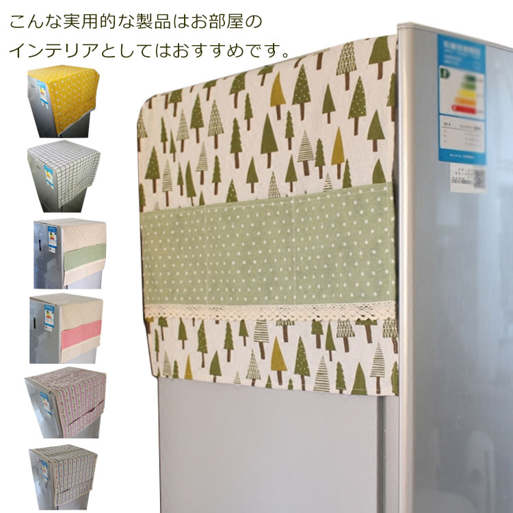 冷蔵庫カバー ツリー柄 チェック柄 ストライプ柄 花柄 可愛い 小物収納ポケット付き日用品雑貨 文房具 手芸 生活雑貨 その他