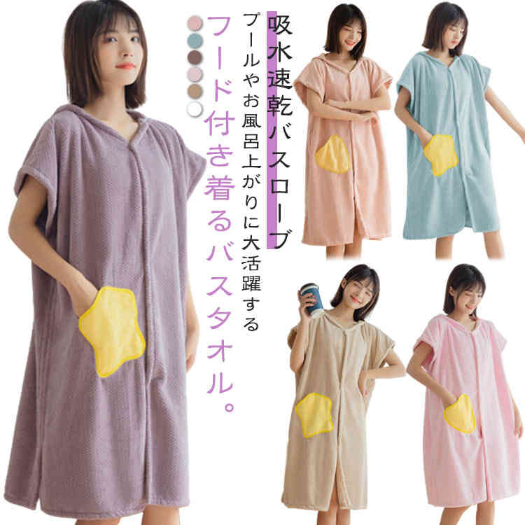 バスローブ ポケット付き レディース お着替えタオル シャワー 海水浴プール タオルドレス バスドレス温泉 ふわふわ速乾 大人可愛い タオル バスタオル大判簡単 お風呂上がり部屋着