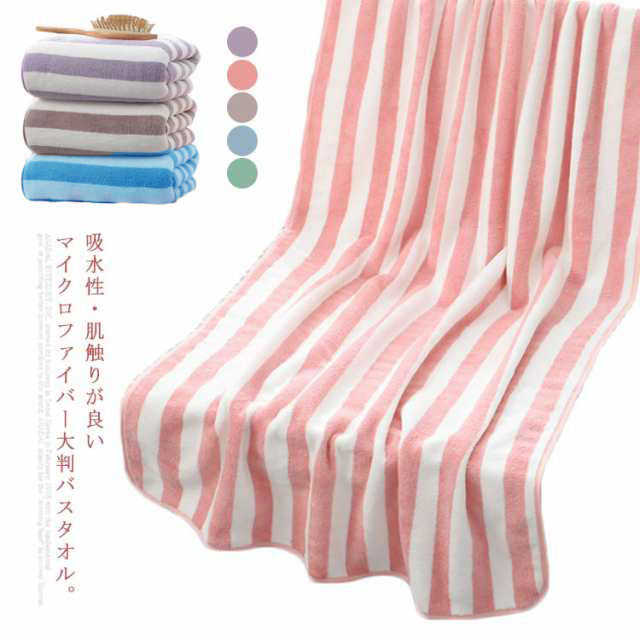 ビッグバスタオル 大判 バスタオル タオルケット ビーチタオル タオル ボーダー柄 無地 マイクロファイバー 厚手 70×140 吸水速乾 ふわふわ ホテル仕様 柔らか 肌触り 抗菌防臭 家庭用