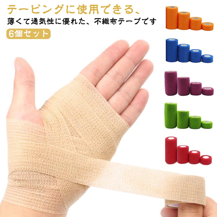 応急手当 6個セット 伸縮包帯 全10色 包帯 お手軽 くっつく包帯 サポート 便利 凝集包帯 通気性 長い ガーゼ 怪我防止 テーピング 防災グッズ フィット ずれにくい ペット くっつく 伸縮性