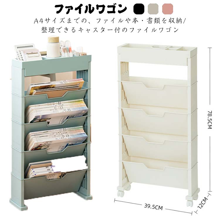4段 A4ファイル対応 ラック サイドラック 机下収納 ファイルワゴンインテリア 寝具 収納 収納家具 本棚 ラック カラーボックス マガジンラック シェルフ