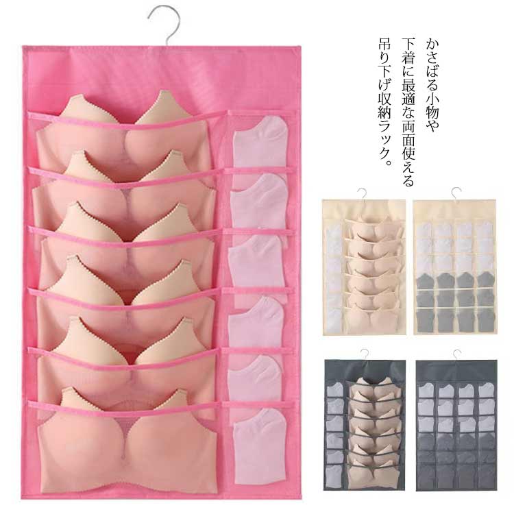 吊り下げ収納ラック ハンガー式 収納ラック 両面収納 収納ケース ラック 壁掛け収納 省スペース 靴下収納 下着収納 ソックス収納 ショーツ収納 物置袋 小物入れ 小物収納 整理