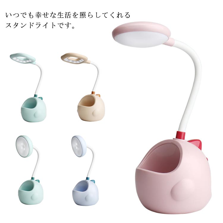 デスクライト 多機能 スタンドライト 読書灯 USB充電式 卓上ライト 目に優しい ペンホルダー 360°回転 軽量 省エネ 読書 勉強 仕事 可愛い