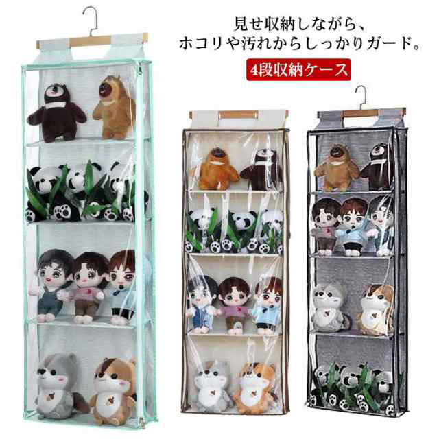 バッグ 吊り下げラック 4段 防塵 防湿 防カビ 透明窓付き カバー 場所をとらずに綺麗にディスプレイ ウォールシェルフ