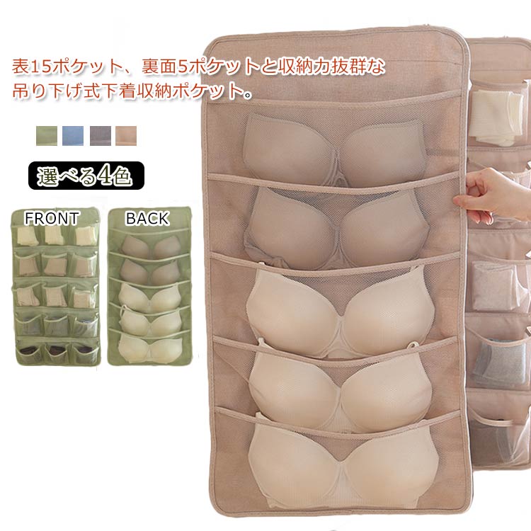 両面使える吊り下げ収納ケース 20ポッケト 大容量 下着収納 靴下 小物収納インテリア 寝具 収納 収納家具 リビング壁面収納 システム収納