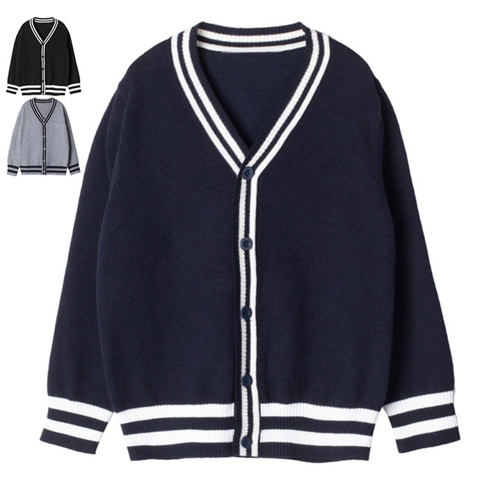 ニットカーディガン 男の子 カーディガン Vネック 長袖 通学 学生服 中学生 小学生 スクール お出掛け 110-170cm