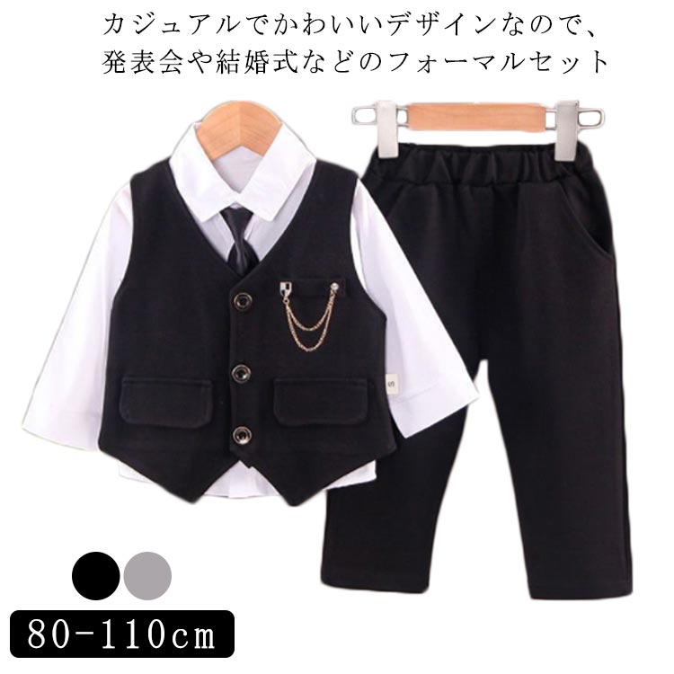 ベビー セットアップ シャツ キッズ 入学式 スラックス フォーマルズボン ベストスーツ 3点セット フォーマルベスト ゆったり 男の子 卒園式 子供ベスト ブラウン 子供スーツ ボーイズ パンツ 卒