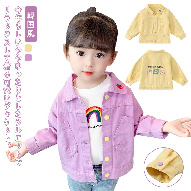 ブルゾン 子供 長袖 上着 キッズ用 かわいい アウター 女の子 140 ウィンドブレーカー 子供服 こども服 ジャケット 韓国風 春秋 ジャンパー シンプル おしゃれ 可愛い デニムジャケット カジ