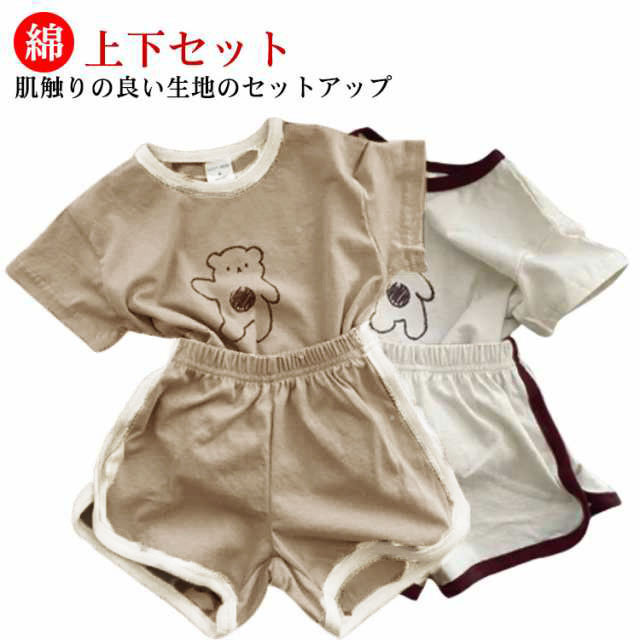 子ども服 上下セット 半袖 女の子 セットアップ ベビー服 新生児 ベビー 服 子供服 子ども 短パン 綿 90 子供 半ズボン コットン 赤ちゃん キッズ 春 夏 シンプル おしゃれ かわいい 出産