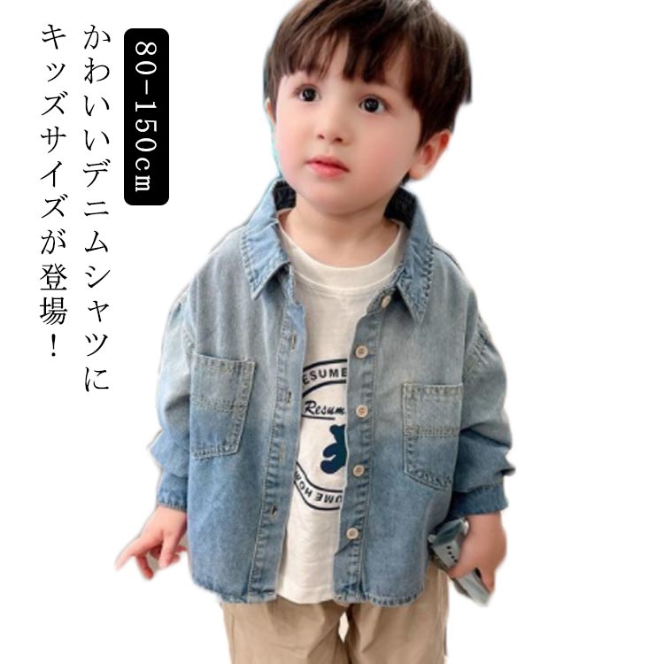 韓国子供服 子供シャツ 子供 シャツ 男の子 長そで ブラウス 可愛い デニムシャツ おしゃれ フォーマル 誕生日 長袖 入園式 こども 七五三 150 ボーイズ ジュニア キッズ 子供服 キッズ キ
