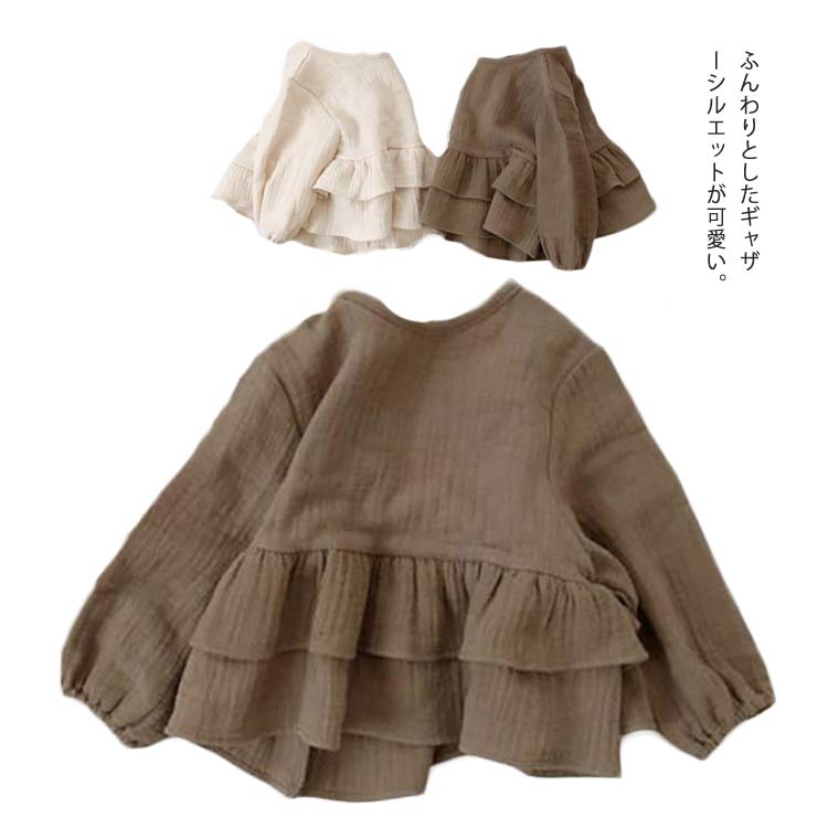 ブラウス シャツ ベビー用 長袖 クルーネック シャツ キッズ用 トップス フリル おしゃれ カットソー