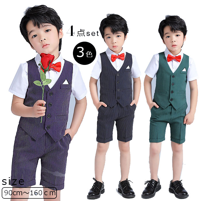 キッズスーツ ベスト付き4点セット スリム 細身 ステージ衣装 ダンス衣装 舞台衣装 男の子 スーツ 男児 子供服 結婚式 ピアノ 発表会 卒業式 卒園式 入園式 七五三 記念撮影 120cm 130