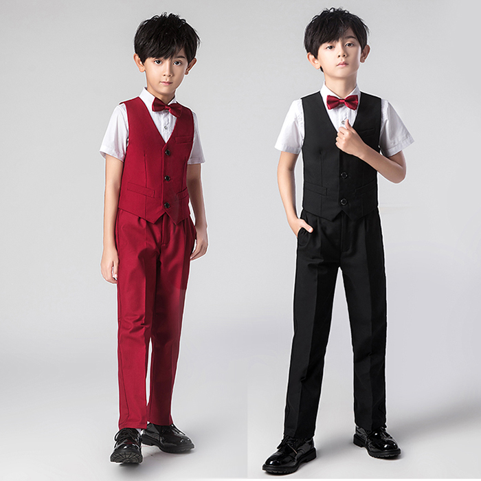シャツ パンツ ベスト 蝶タイ 4点セット ブラック ワインレッドキッズ ベビー マタニティ キッズファッション スーツ カジュアルセットアップ スーツ