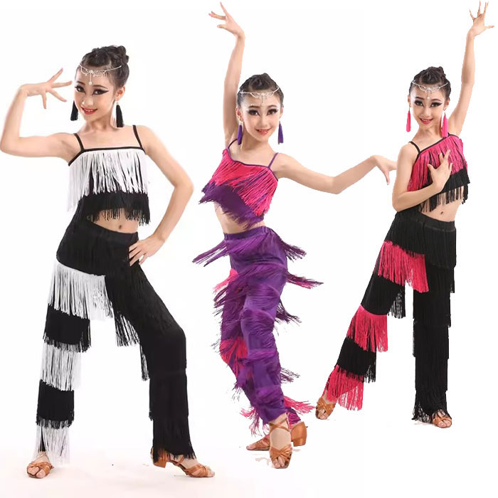 ダンス衣装 子供 キッズ ラテンダンス トップス パンツのセット 上下セット フリンジ おしゃれ 女の子 ダンス衣装 舞台衣装ステージ衣装 イベント 団体ダンス 110 120 130 140 1