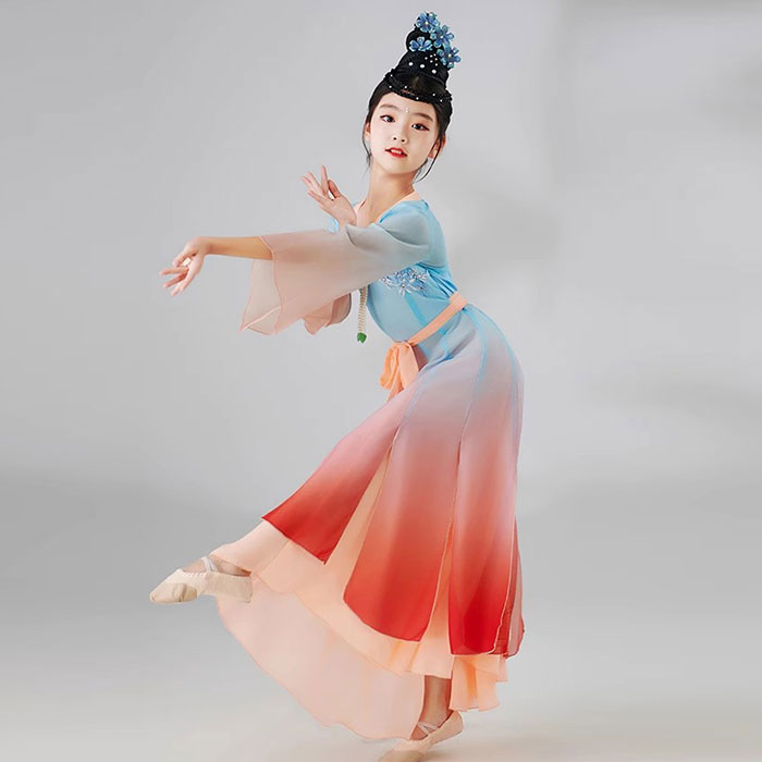 ダンス衣装 子供 キッズ ロング丈 ワンピース 可愛い 漢服デザイン おしゃれ 女の子 ダンス衣装 舞台衣装 ステージ衣装 イベント 団体ダンス 110 120 130 140 150 160 1