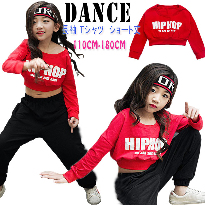 子供~大人まで S-XL 110 120 130 140 150 160 170 180 トレーナー ショート丈 Tシャツ 長袖 トップス レッド アメカジ ダンス 衣装