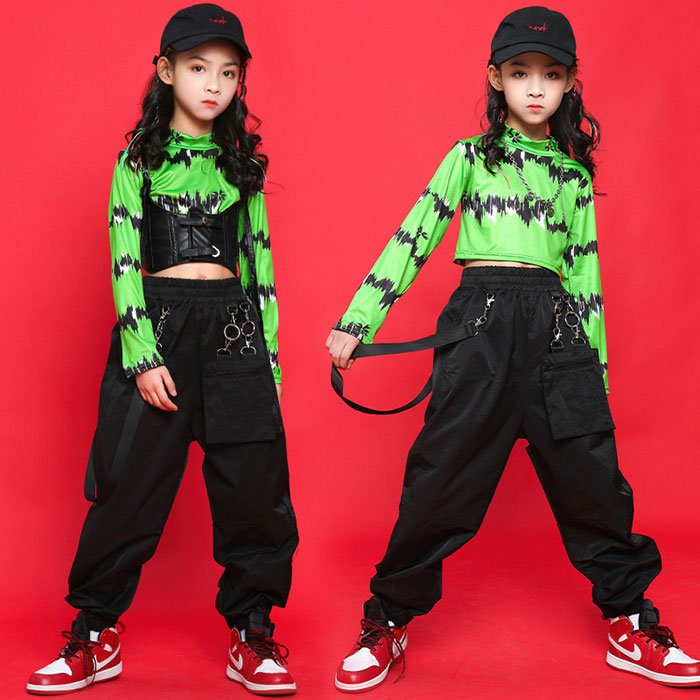 キッズ 子供用 ダンス衣装 ヒップホップ セットアップ 黒 ベスト キャミソール 黒 ロングパンツ 女の子 ジャズ ダンス 衣装 ジュニア ガールズ 派手 目立つ ジャズ ダンス 服 ジ