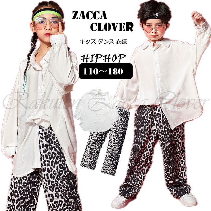 キッズ ダンス 衣装 ヒップ ホップ 2点セット ホワイト 白 シャツ 長袖 ゆったり レオパード パンツ 子供 ダンス 服 発表会 ガールズ 男の子 女の子 ダンス衣装 ジャズ 派手