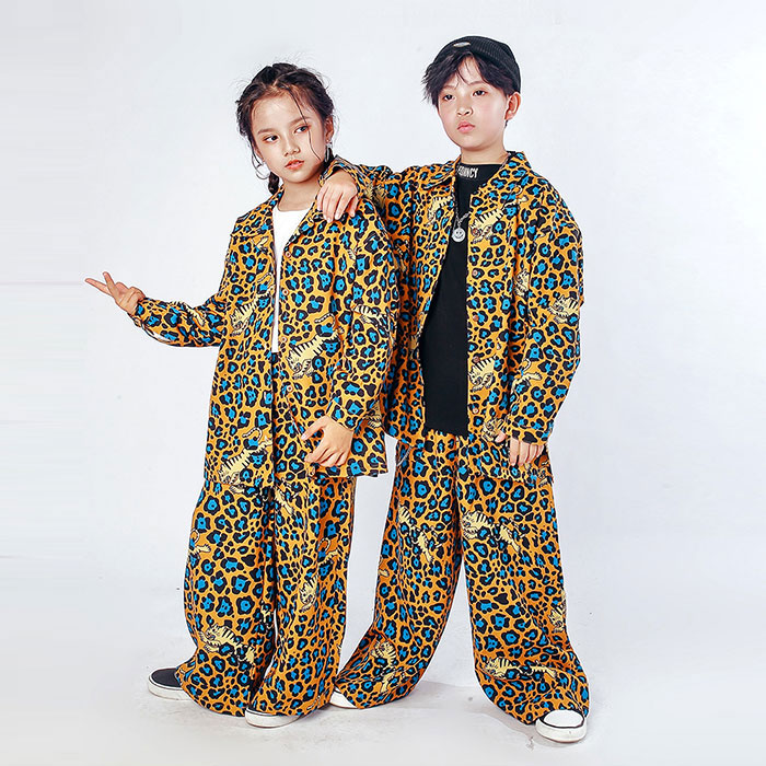 ダンス衣装 キッズ セットアップ ヒップホップ 上下2点セット レオパード柄 派手 シャツ パンツ ダンス発表会 イベント 子供用 男の子 女の子 ジュニア ヒョウ柄 110 120 130