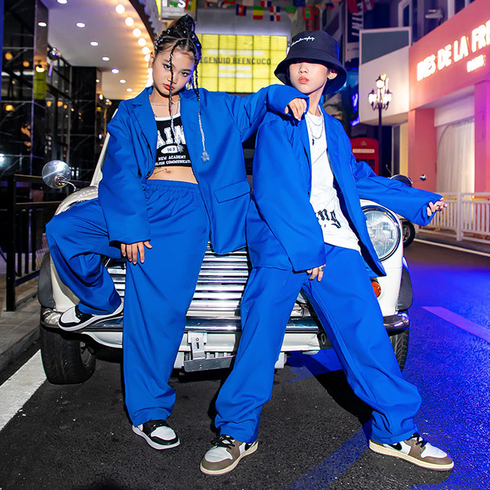 キッズ ダンス衣装 セットアップ ヒップホップ ブルー ジャケット パンツ キッズダンス セット衣装 スーツ 120 130 140 150 160 170 180 女の子 男の子 長袖 ダンスウェア