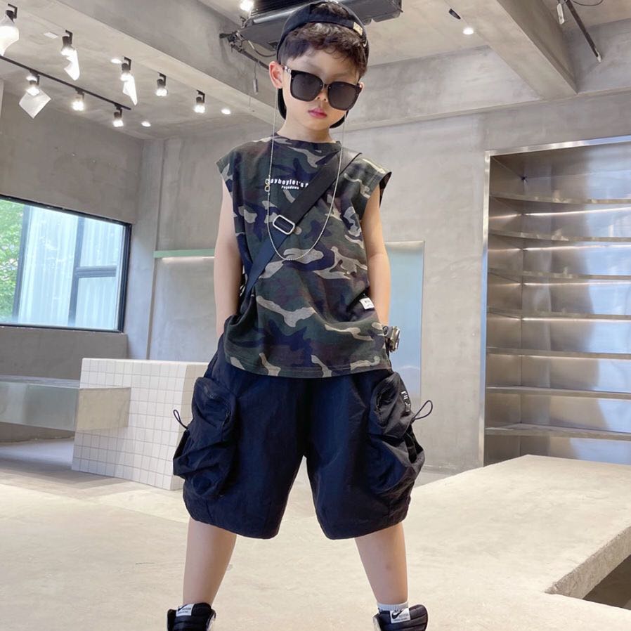 キッズ 子供服 トップス+ショートパンツ 2点セット 男の子 春夏 ノースリーブ 英文字 薄手 カジュアル110 120 130 140 150 160 068