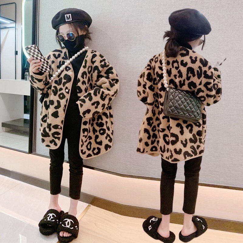 キッズ 子供服 ロングコート アウター 女の子 秋冬 ゆったり 可愛い ジュニア 長袖 ヒョウ柄キッズ ベビー マタニティ キッズファッション コート ジャケット